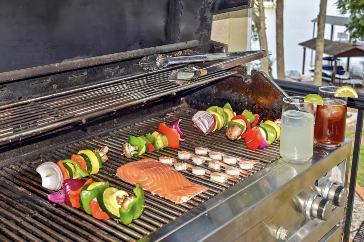 • Propane grill for cookouts in any weather under the covered porch