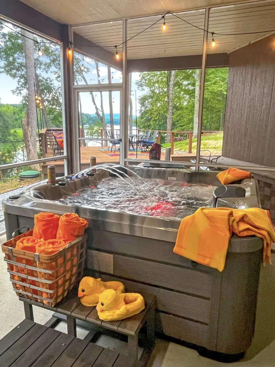 • Rejuvenating hot tub overlooking the water