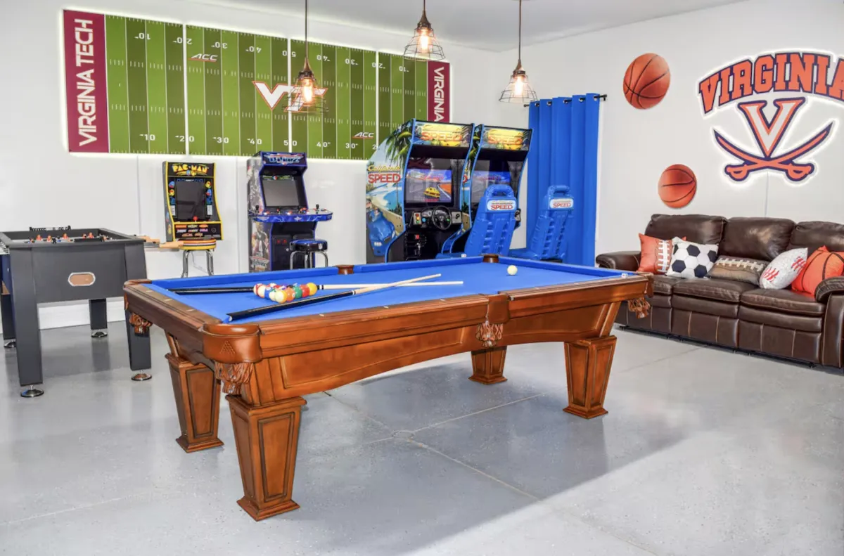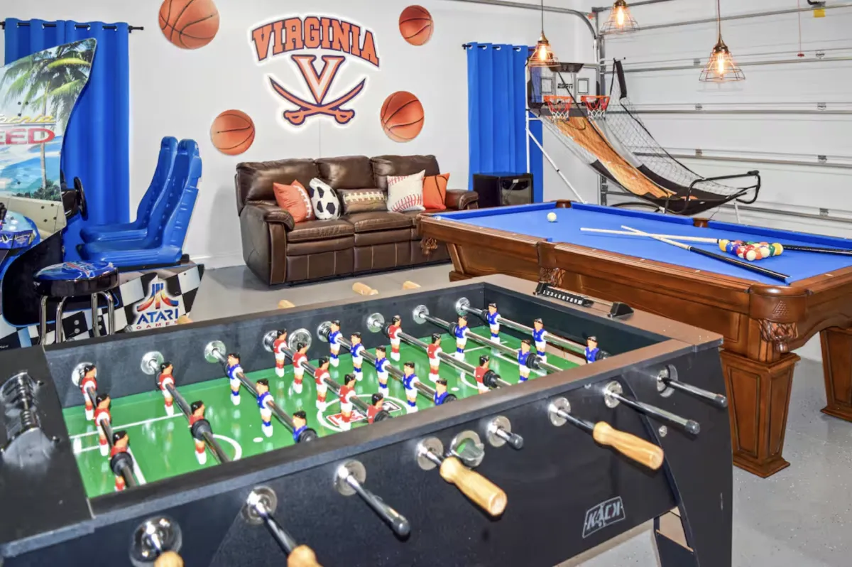• Dedicated game room featuring pool table, foosball, shuffleboard, basketball, and arcade games
