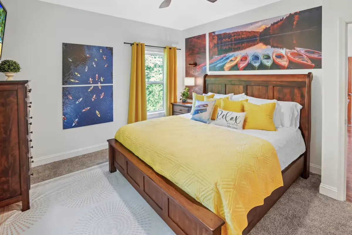 Escape to The Lazy Paddle, a stunning 4-bedroom, 2.5-bath lake house nestled in a peaceful cove with a private dock. This spacious retreat comfortably accommodates up to 8 guests and offers the perfect blend of relaxation and entertainment.