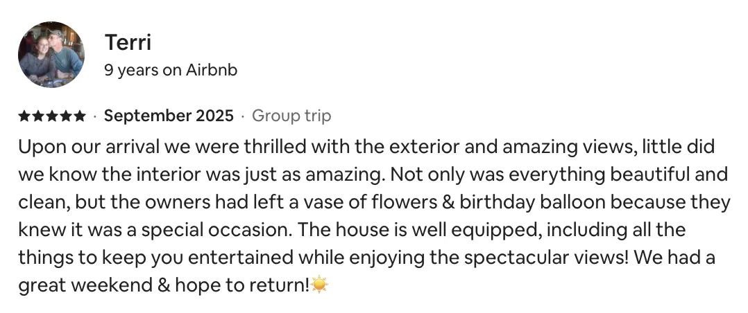 Throughout our travels across the US, Canada, and abroad, we've stayed in countless rentals – the good, the great, and the not-so-great. Those experiences taught us exactly what makes a stay truly special. That's why we created this space with one simple goal: to provide everything we'd want in a rental ourselves.